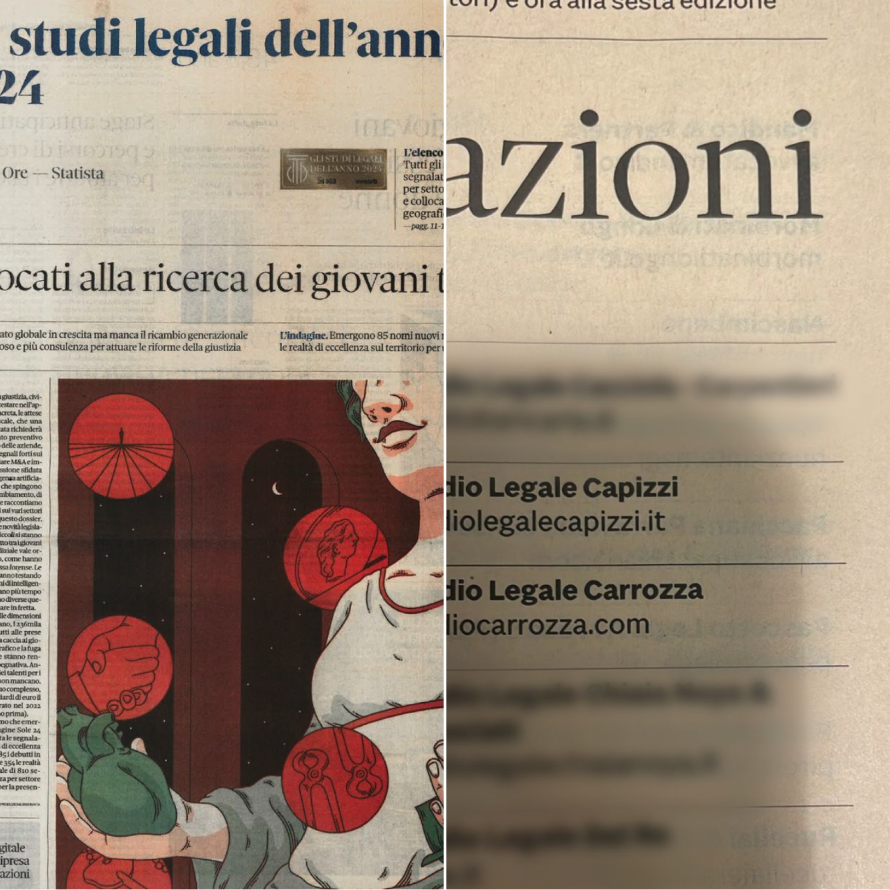 Lo Studio Legale Carrozza è stato selezionato tra gli "Studi legali dell'anno 2024", un elenco redatto in seguito all'indagine annuale di Statista e Il Sole 24 Ore. Questo riconoscimento evidenzia le eccellenze del panorama legale italiano, valutando sia le competenze regionali che specifiche aree di attività.