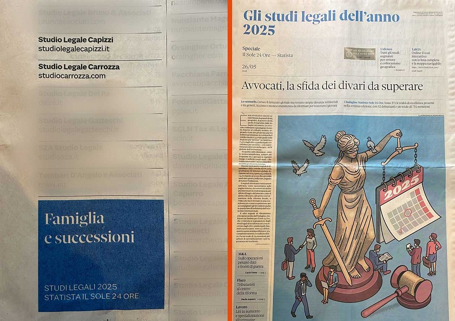 Anche nel 2025 lo Studio Legale Carrozza è stato selezionato tra gli "Studi legali dell’anno 2025", secondo l’indagine annuale condotta da Statista e Il Sole 24 Ore.